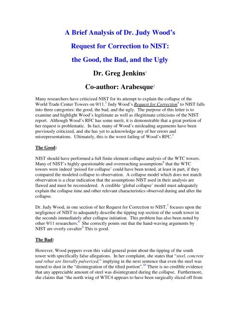 A Brief Analysis Of Dr Judy Wood S Request For Correction To Nist
